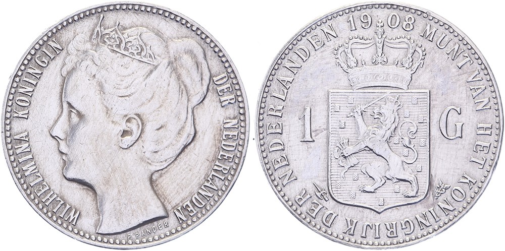 1 Gulden 1908 mmt. hellebaard Sch. 810 Prachtig