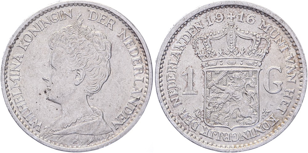 1 Gulden 1916 mmt. zeepaardje Sch. 818 Prachtig