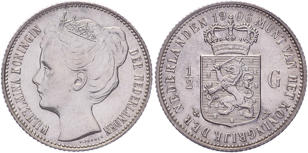 ½ Gulden 1906 mmt. hellebaard Sch. 833. Enig patina Vrijwel FDC