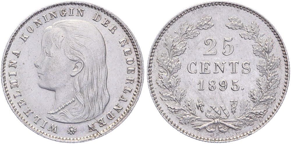 25 Cents 1895 mmt. hellebaard Sch. 850a. Schuin mmt. Prachtig / FDC