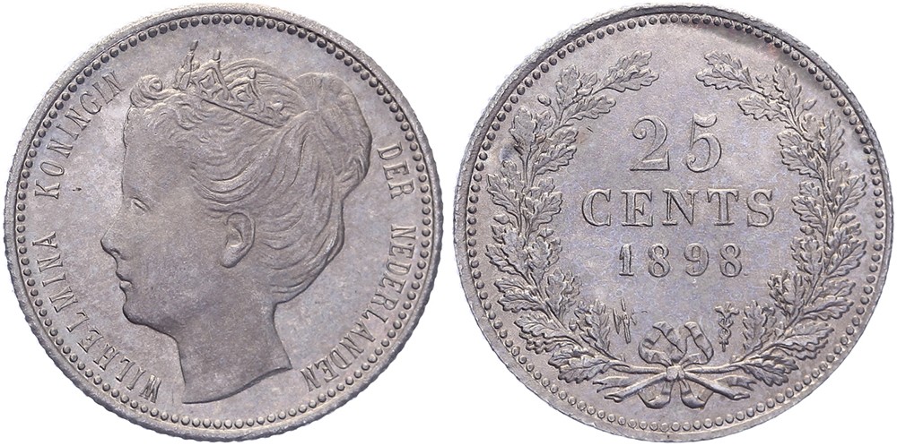 25 Cents 1898 mmt. hellebaard Sch. 853. Met gepolijste stempels geslagen Vrijwel FDC