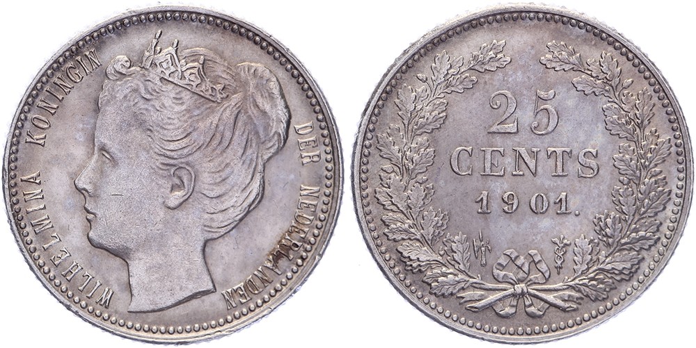 25 Cents 1901 mmt. hellebaard Sch. 854. Brede hals, beginnend patina Vrijwel FDC