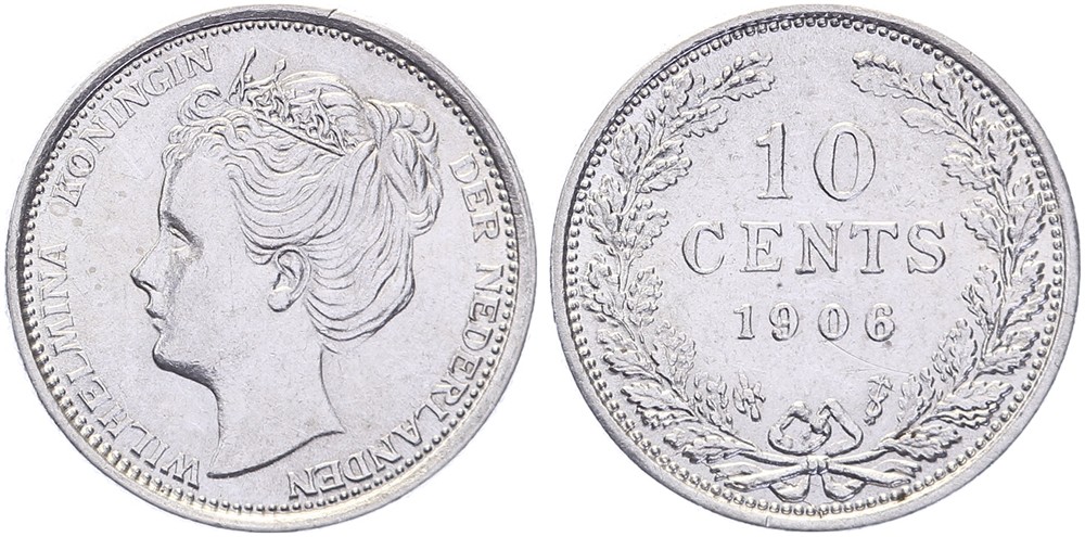 10 Cents 1906 mmt. hellebaard Sch. 888. Mooie kleur Vrijwel FDC