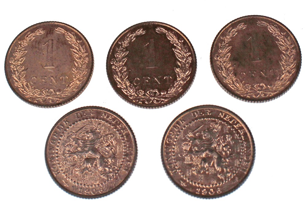 Lot (5) 1 Cent 1906 mmt. hellebaard Sch. 974. Originele kleur Vrijwel FDC