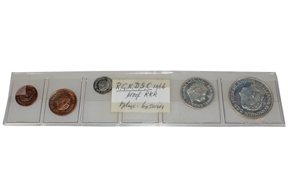 Proofserie 1966 in plastic strip; 1 – 5 – 10 – 25 cent en 1 – 2½ gulden.