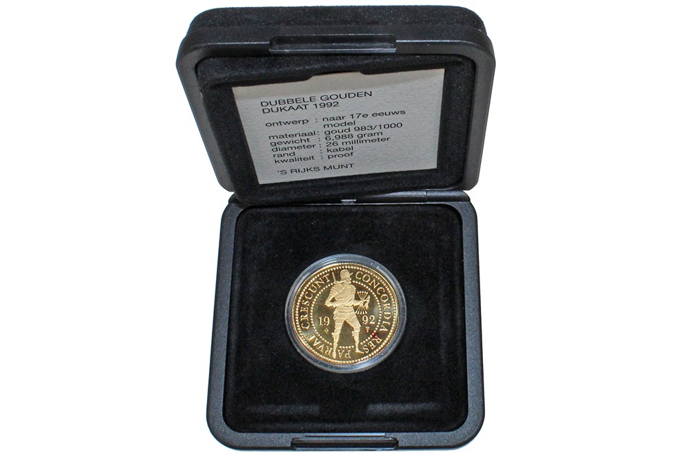Dubbele gouden dukaat 1992. Proof in cassette.