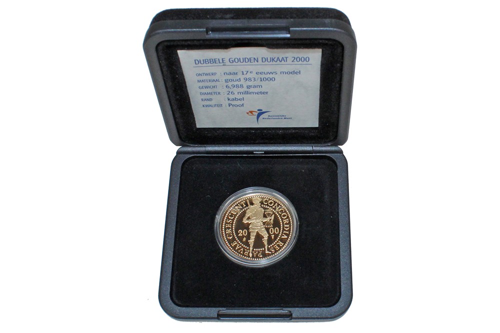 Dubbele gouden dukaat 2000. Proof in cassette.