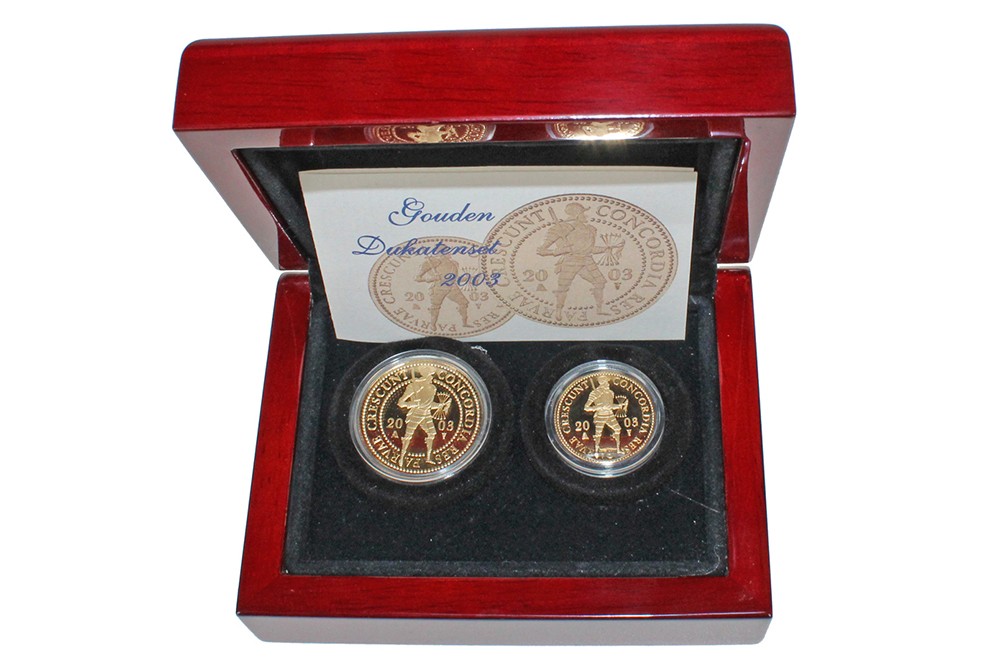 Dukatenset 2003; enkele en dubbele gouden dukaat. Proof in cassette.