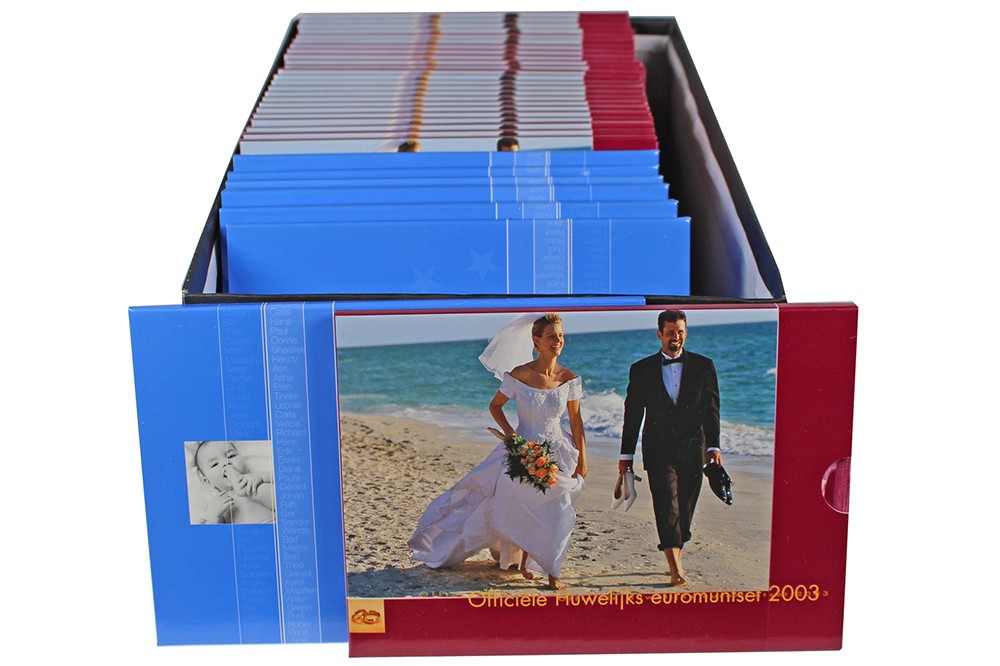Doos met 35 Eurosets Nederland, huwelijk en geboorte.