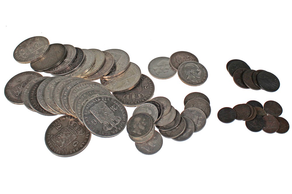 Kistje (44) zilver- en kopergeld Willem III. Voornamelijk mindere kwaliteiten.