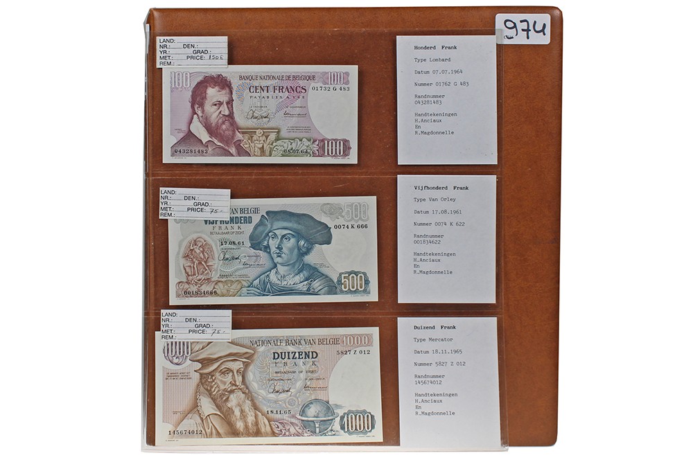 Lichtbruin album met prachtcollectie Belgische bankbiljetten waaraan zeer veel zorg is besteed. Ook met varianten, in mooie kwaliteit!