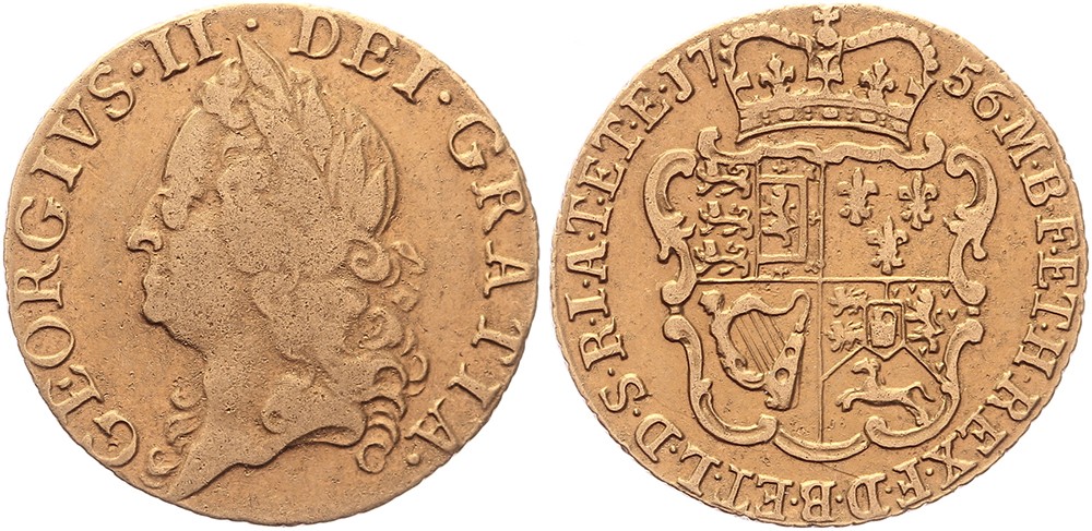 ½ Guinea 1756. Fr. 349; KM 587; S3685 [4,04 g.]. F / VF.