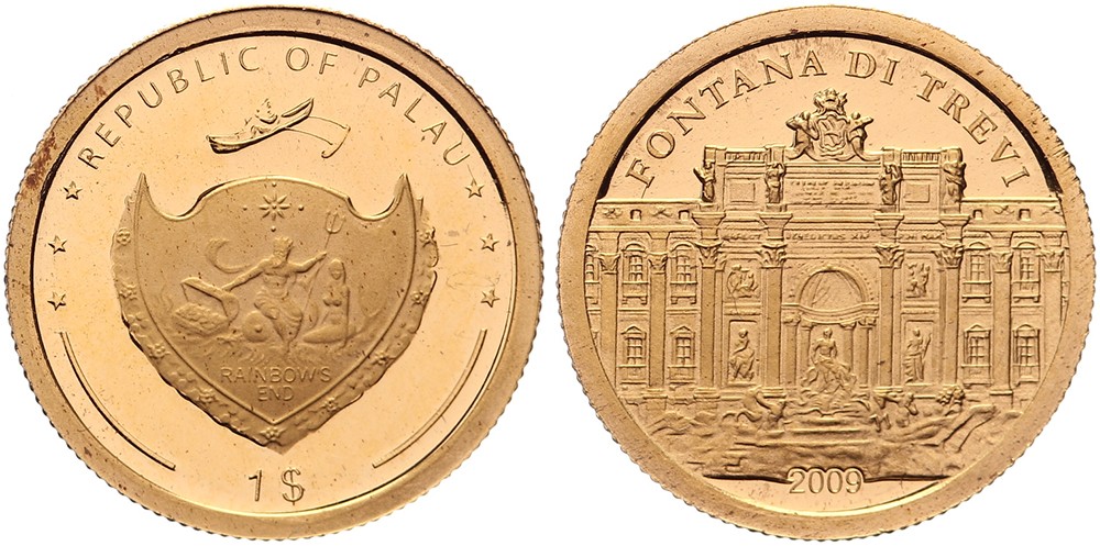 Dollar 2009 Fontana di Trevi. Fr. 22; KM 241. Au999. Proof.