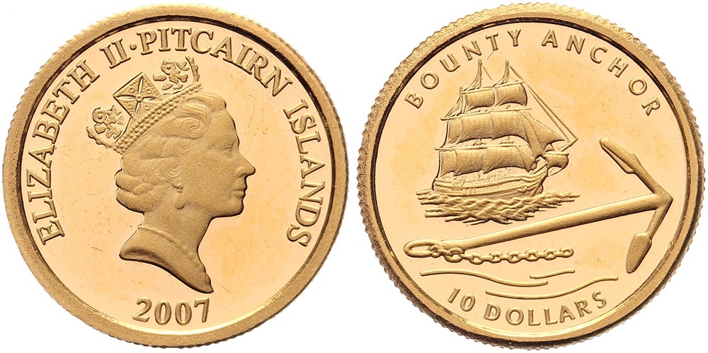 10 Dollars 2007 Bounty sailing forward. Fr. 6; KM -. Au999. Proof.