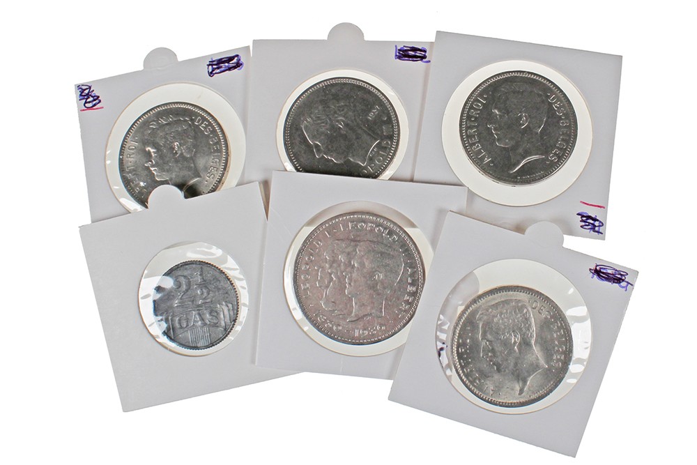 Lot (6) België o.a. 5 Franc 1934. KM 97.1. Toegevoegd gaspenning van 2 ½ cent (1942) Gorredijk. Ruim zeer fraai en beter.