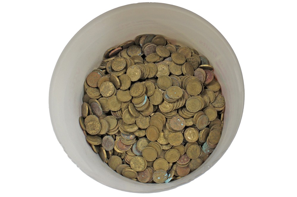 Emmertje met ruim 8 kg. Three Pence from Engeland.
