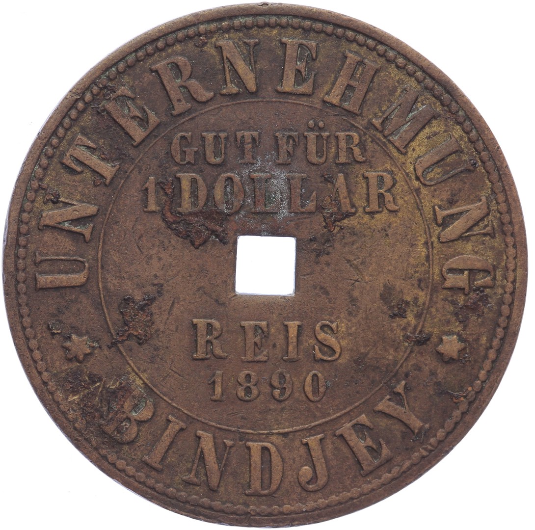 Bindjey. 1 Dollar Reis 1890. LaBe 45a; LaWe 45a; Scholten 1040. RR. Fraai / Zeer fraai.