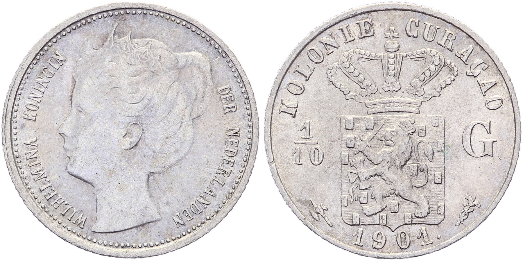 1/10 Gulden 1901. Scholten 1393; KM 36. Ruim prachtig.