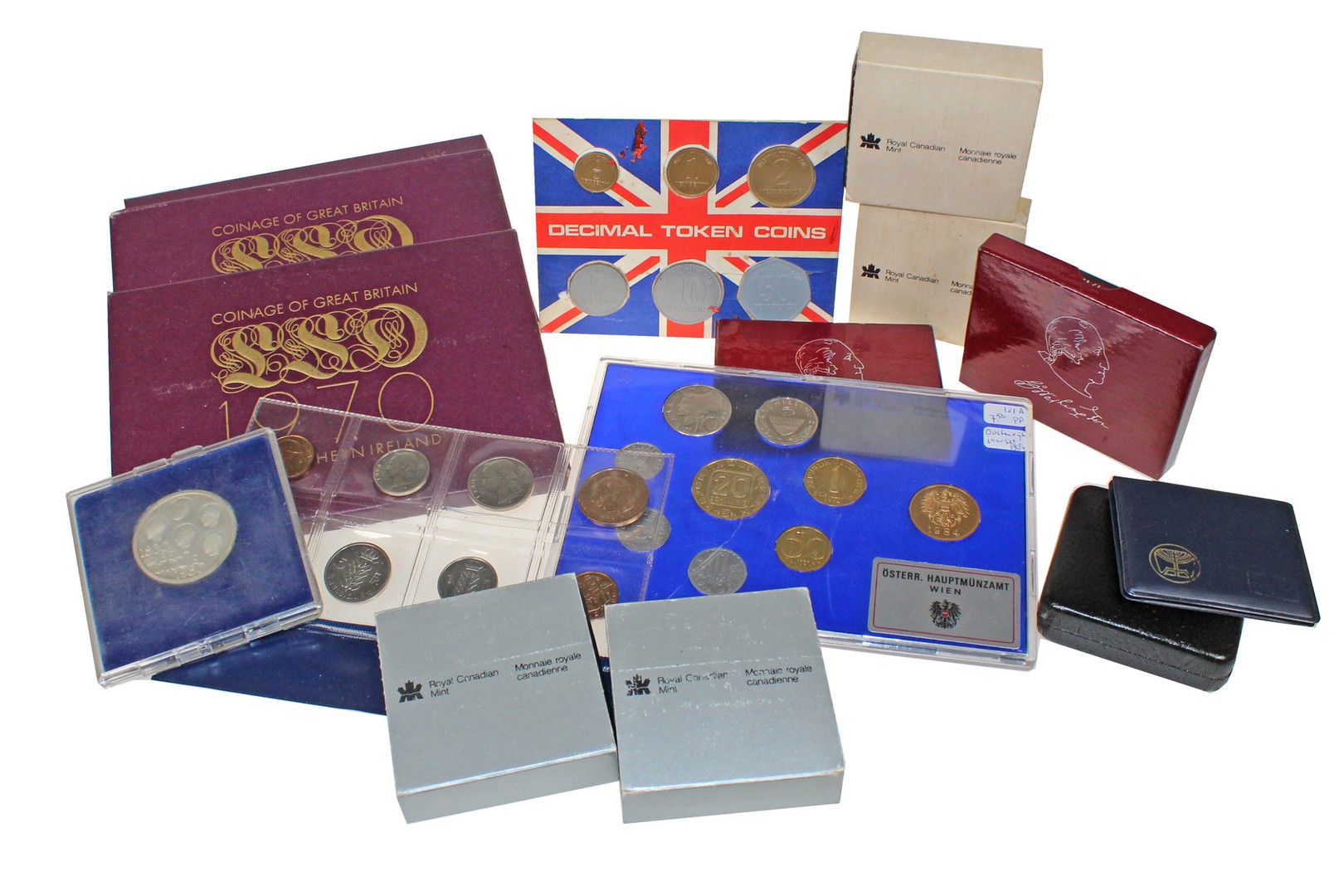 Doos met diverse sets, o.a. Engeland; 5 x 1$ Canada.