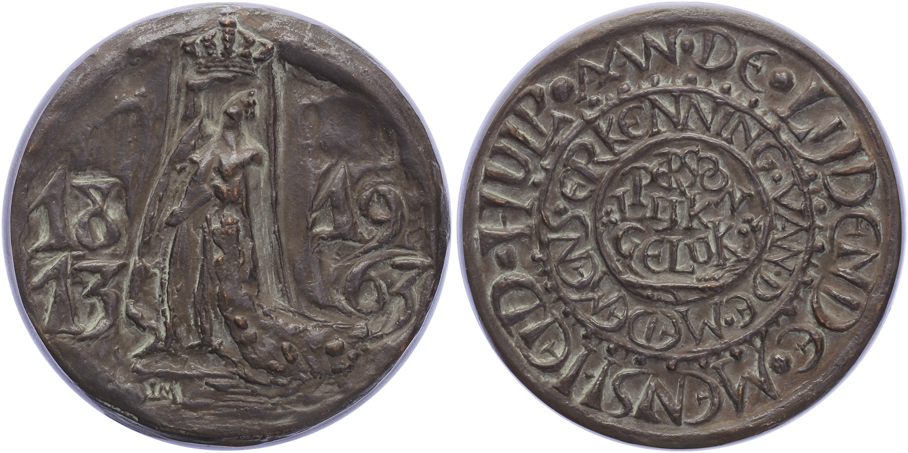 1963 150 jaar onafhankelijkheid. Staande konigin Juliana. / Omschrift in drie cirkels.Æ 70. KB VI-2849. Loeki Metz. Prachtig.