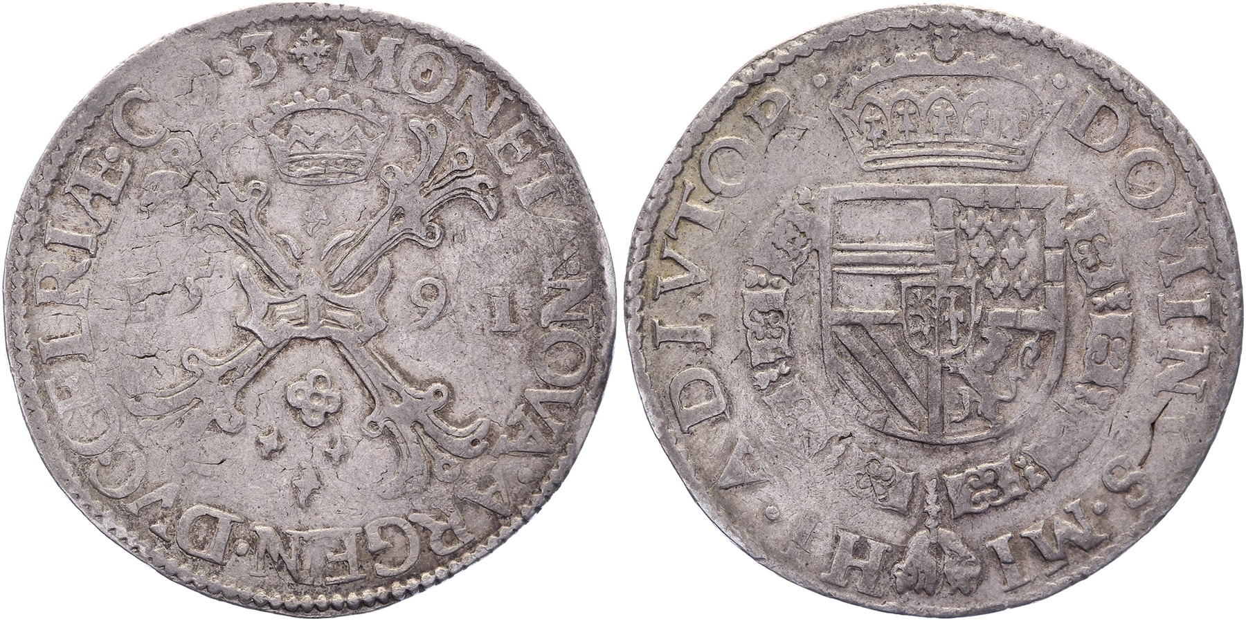 Bourgondische kruisdaalder 1591. Delm. 803; CNM 2.17.92; HPM 11. Ruim fraai +.