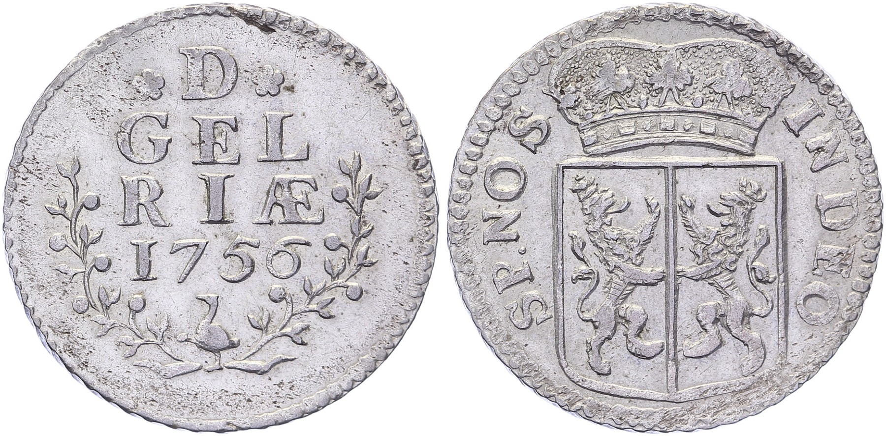 Duit 1756. Afslag in zilver van 3,57 gram. PW 1015; CNM 2.17.193. Zeldzaam! Prachtig.