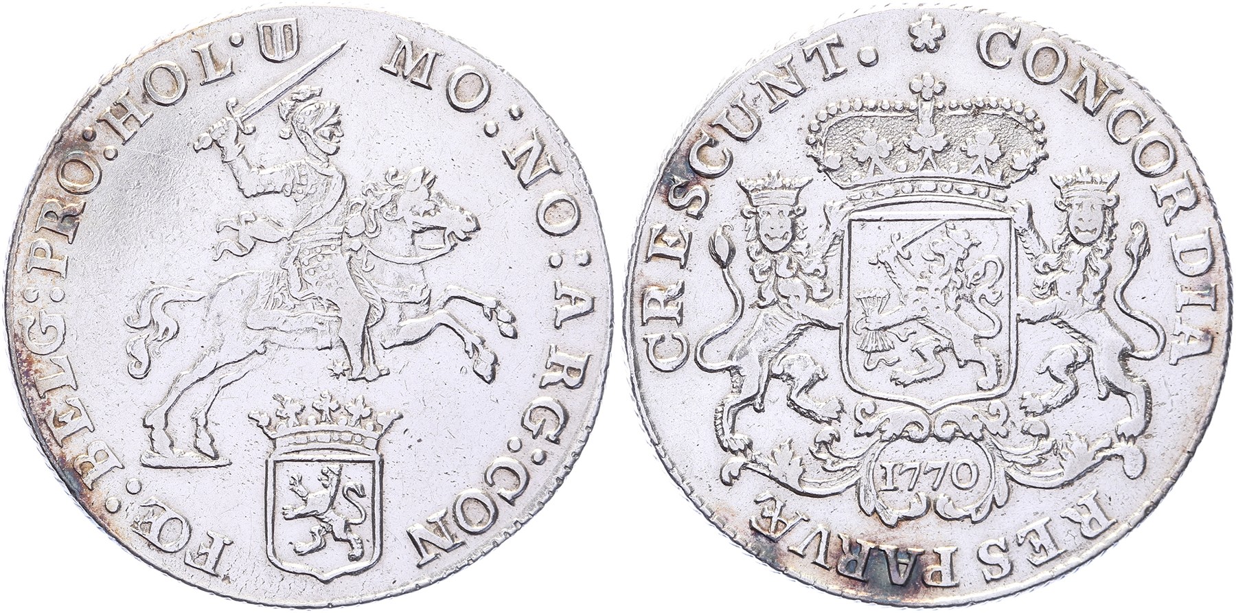 ½ Rijder of ½ dukaton 1770. Delm. 1047; CNM 2.28.88; HPM 46. Gepoetst en vlekkerig. Bijna zeer fraai.