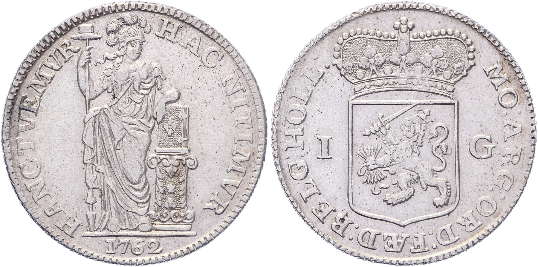 1 Gulden 1762. Delm. 1179; CNM 2.28.104; HPM 64. Ruim zeer fraai.