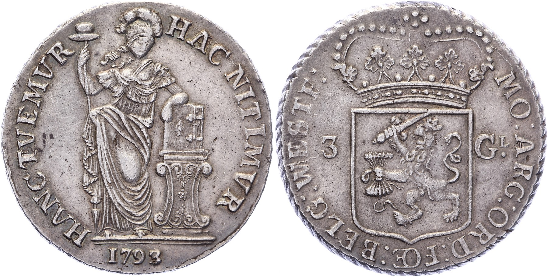 3 Gulden 1793. Delm. 1147; CNM 2.46.55; HPM 46. Ruim zeer fraai.