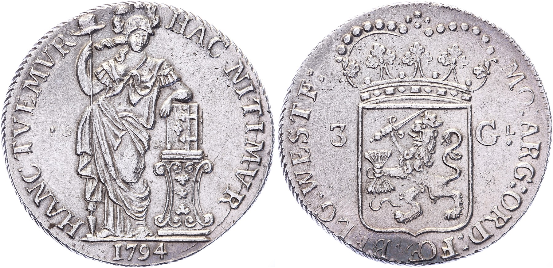 3 Gulden 1794. Delm. 1147; CNM 2.46.55; HPM 46. Licht gepoetst. Zeer fraai.