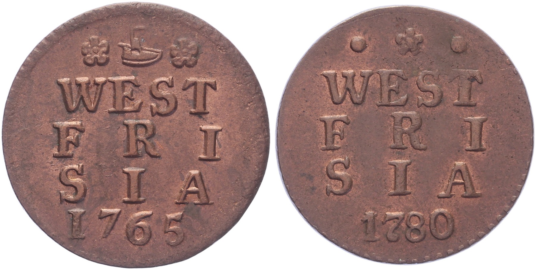 Lot (2) Duit 1765 en 1780. PW 3011 + 3014; CNM 2.46.98 + 101. Originele kleur. FDC.