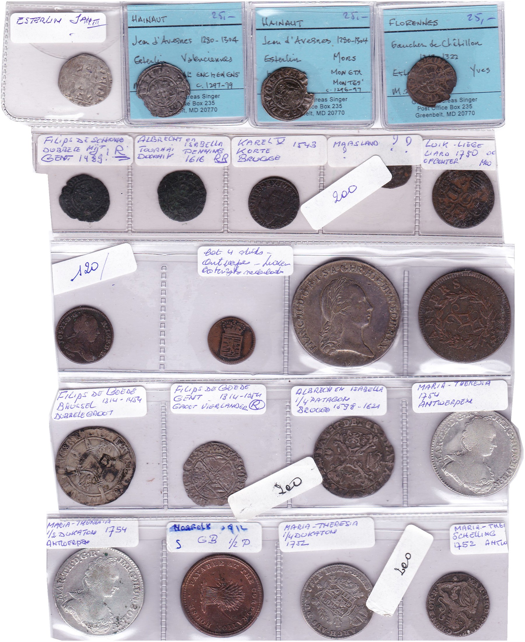 Kistje met lot voornamelijk Zuidelijke Nederlanden, o.a. Luik en Brugge. Mooi studielot. Ca. 35 stuks.