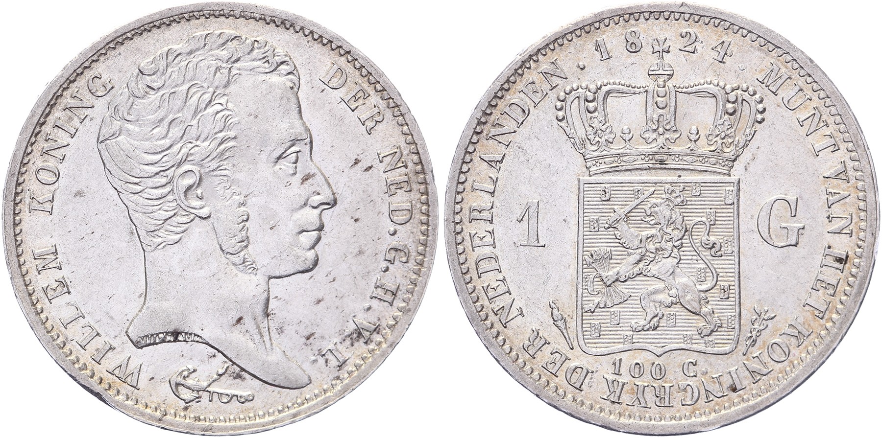 1 Gulden 1824 Utrecht mmt. fakkel Sch. 264 Ruim prachtig