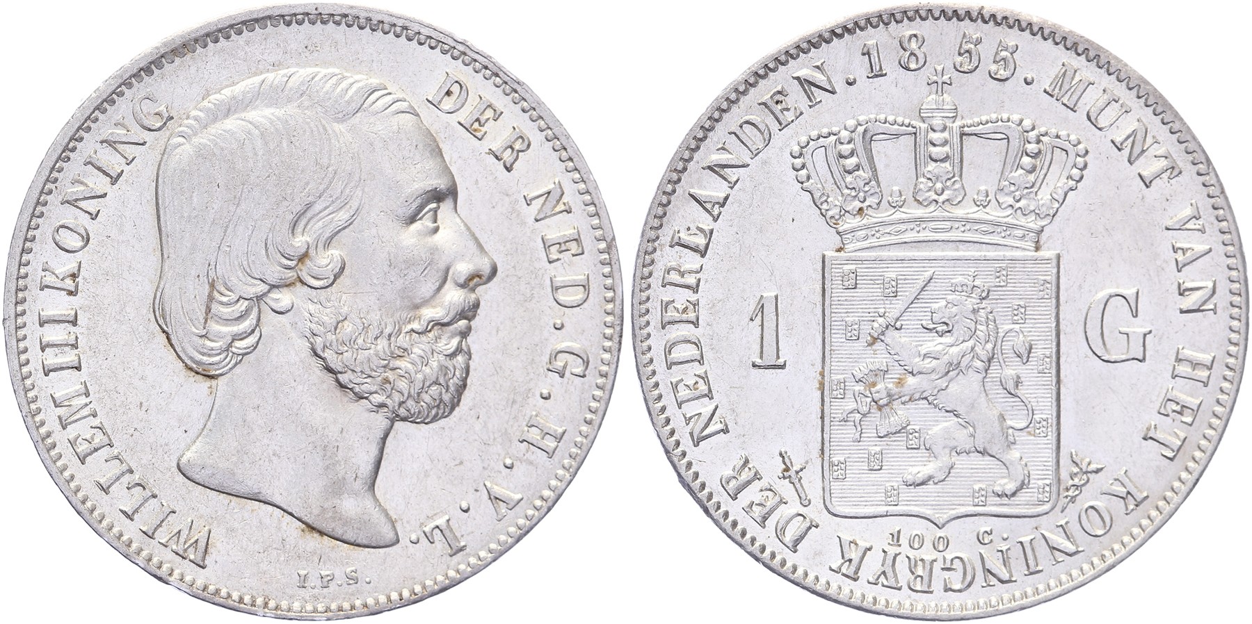 1 Gulden 1855 mmt. zwaard Sch. 608 Prachtig / FDC