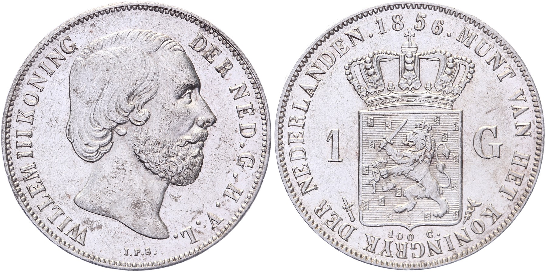 1 Gulden 1856 mmt. zwaard Sch. 609 Prachtig / FDC
