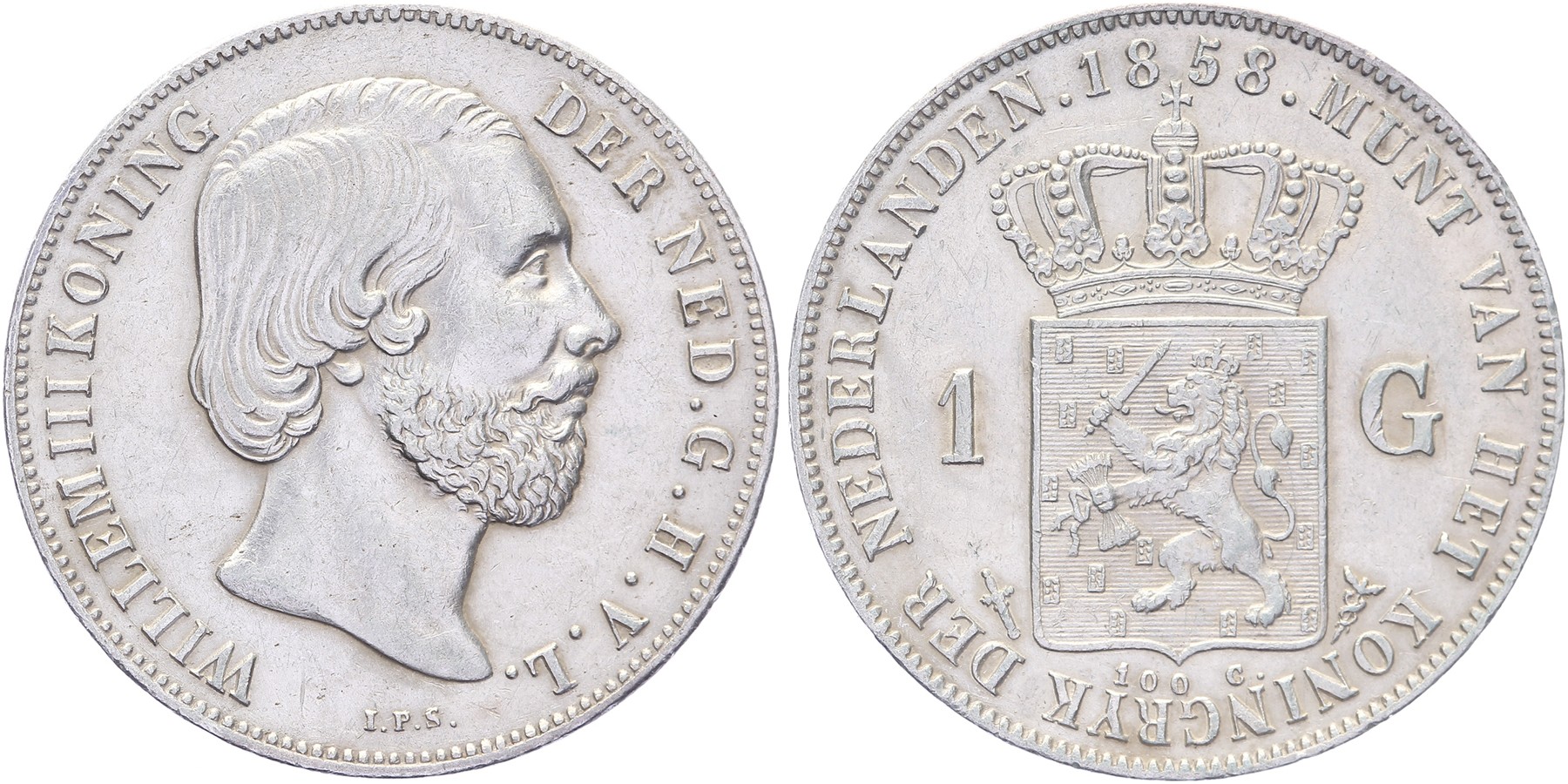 1 Gulden 1858 mmt. zwaard Sch. 611 Vrijwel prachtig