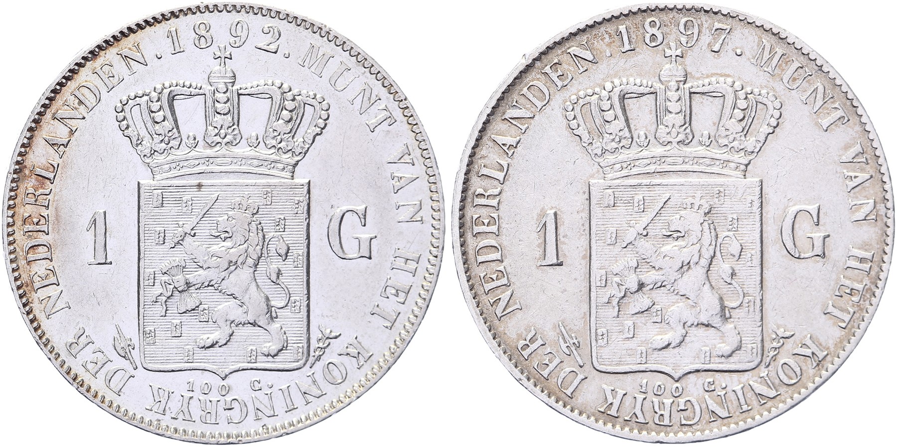 Lot (2) 1 Gulden 1892 en 1897 Sch. 795 en 797 Ruim zeer fraai