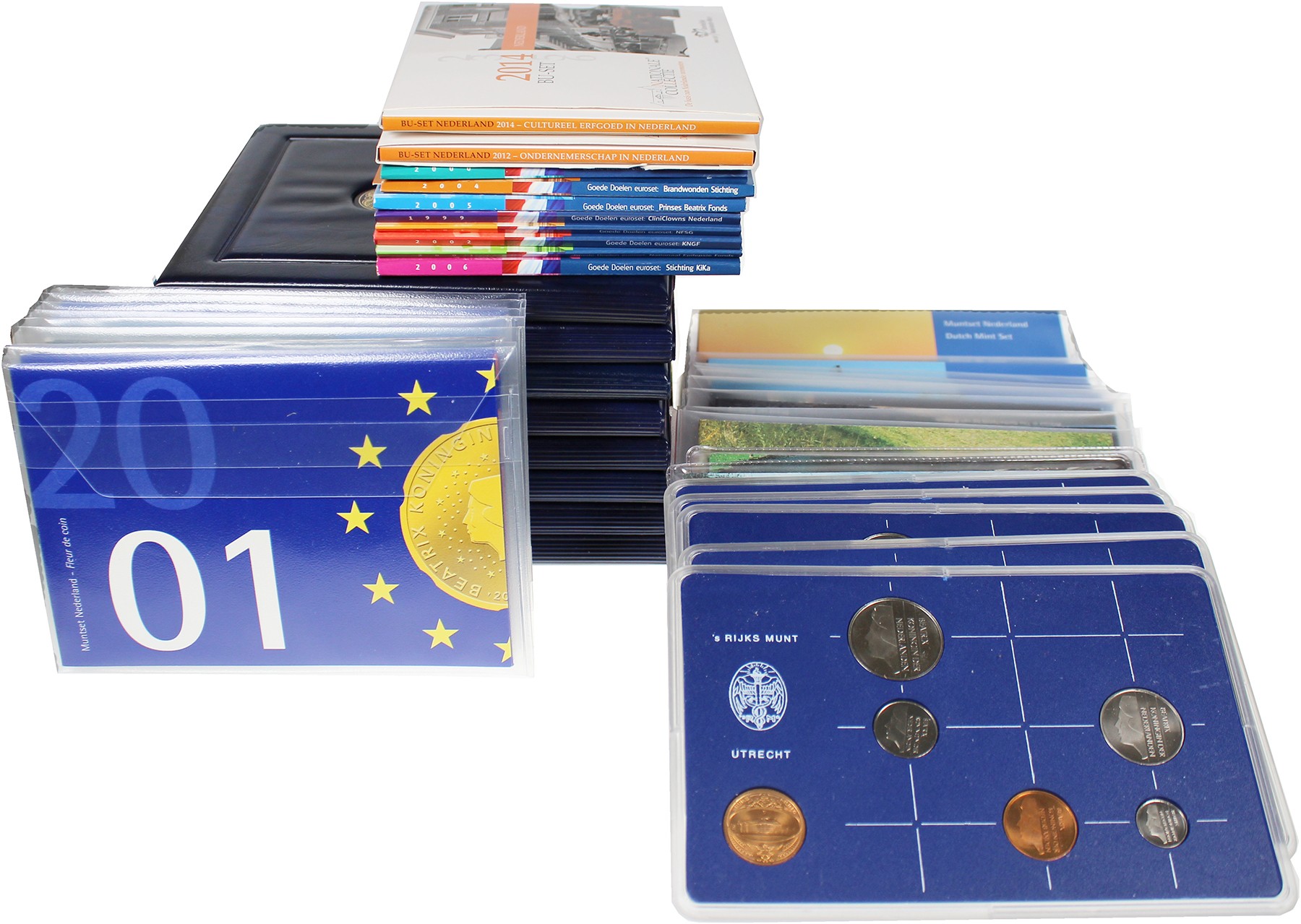 Doos met groot lot FDC- en Proofsets Nederland. 8 x proofsets uit de jaren 80-90. Eveneens uit deze periode 30 stuks FDC-sets. Toegevoegd: 9 goede doelensets etc. etc.