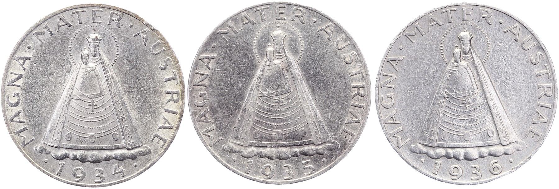 Lot (3) 5 Schilling 1934, 1935 & 1936. KM 2853. Sehr schön / Vorzüglich.