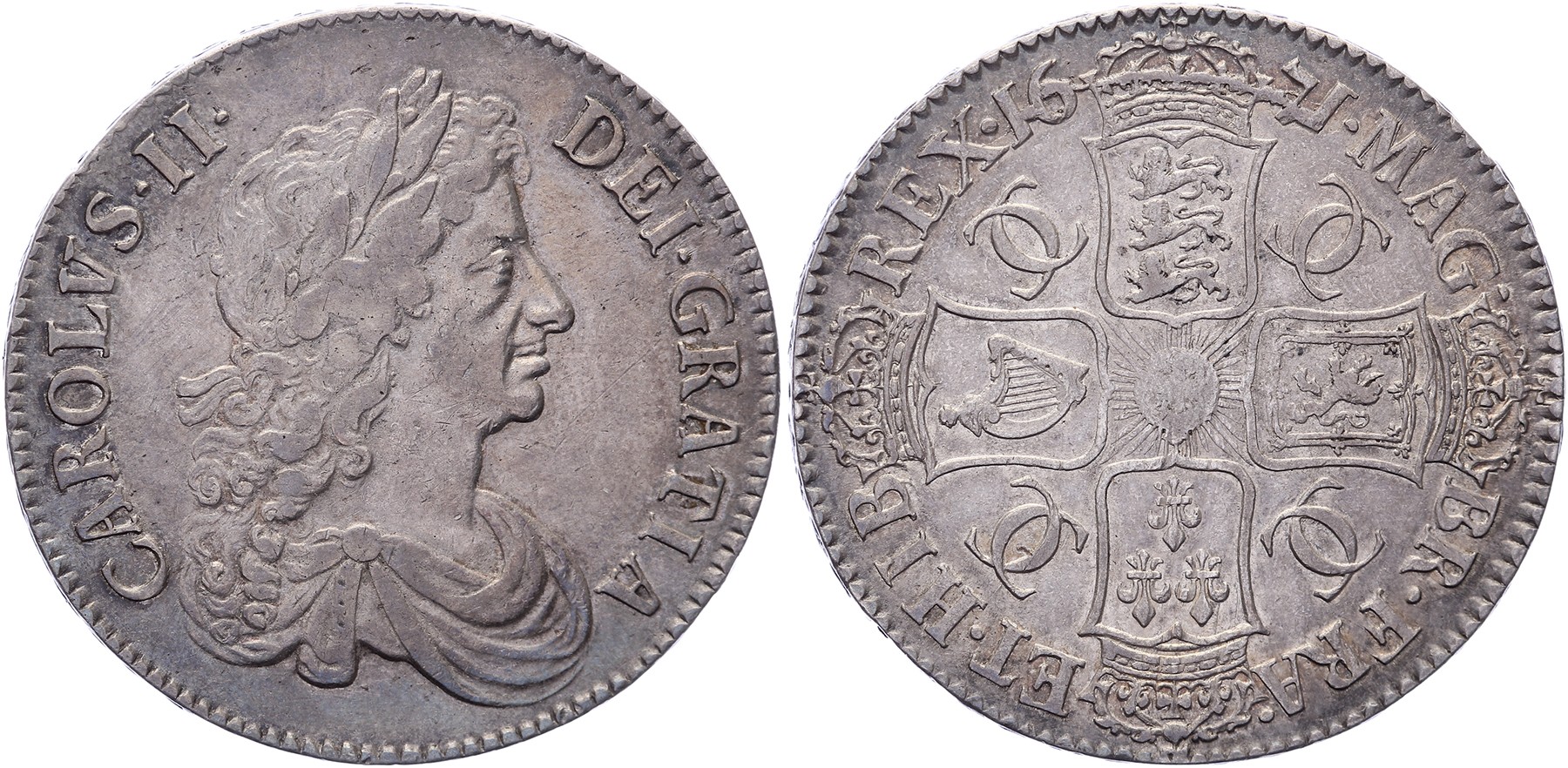 Crown 1671 third bust (V. Tertio). S.3358; KM 435. VF.
