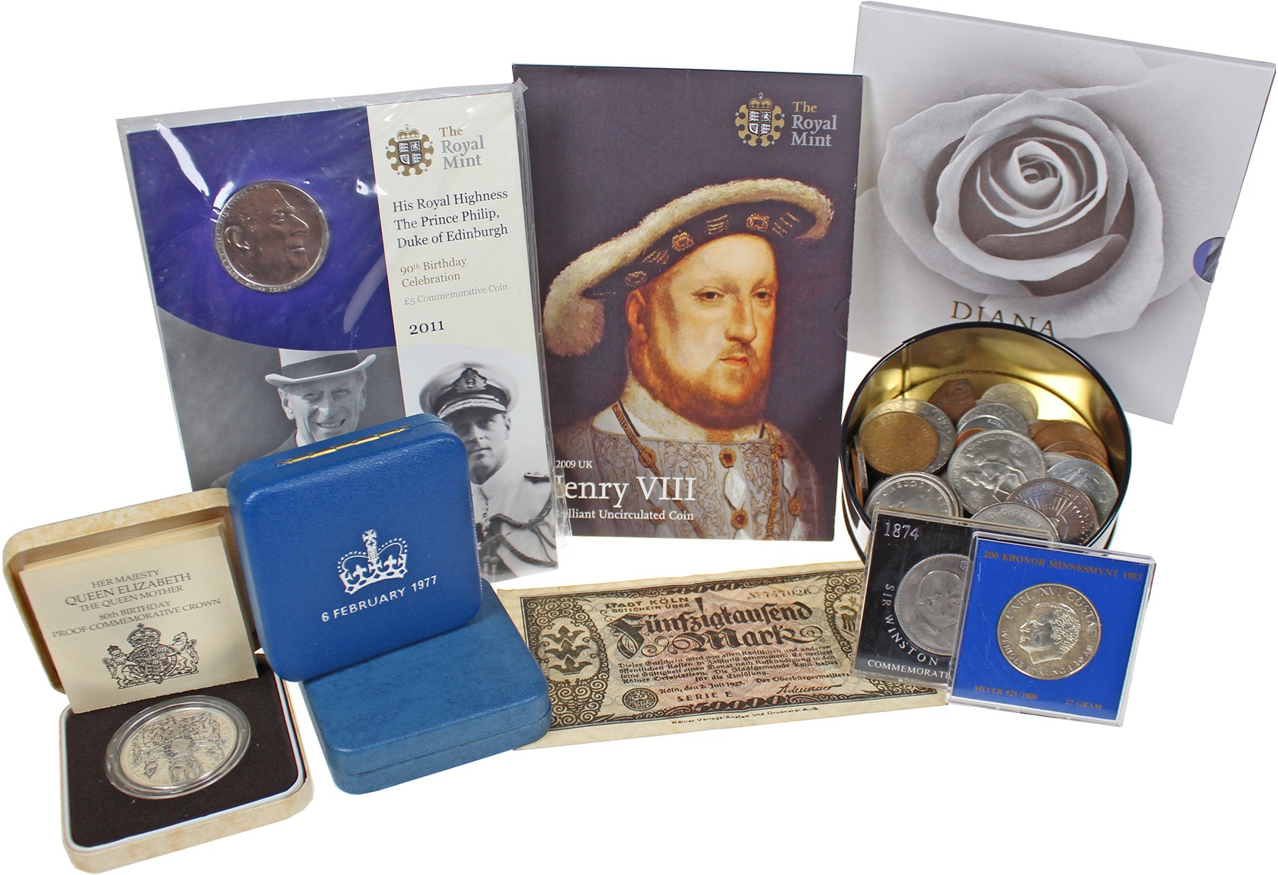 Schoenendoos met vnl. modern Engeland en blikje divers.