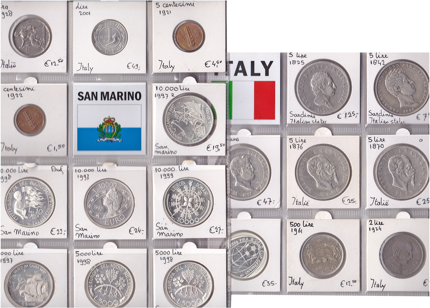 Bruine muntslof met lot Italië en San-Marino vanaf Carolus tot Vittorio Emanuele 19 stuks.