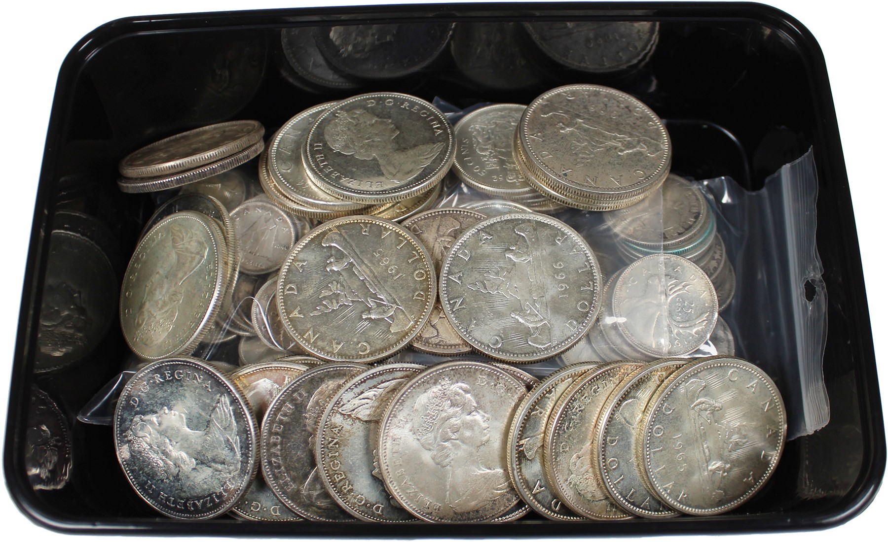 Leuk lot met Canadese munten. Uitsluitend zilver! Bruto: ruim 1000 gram 800/1000 AR.