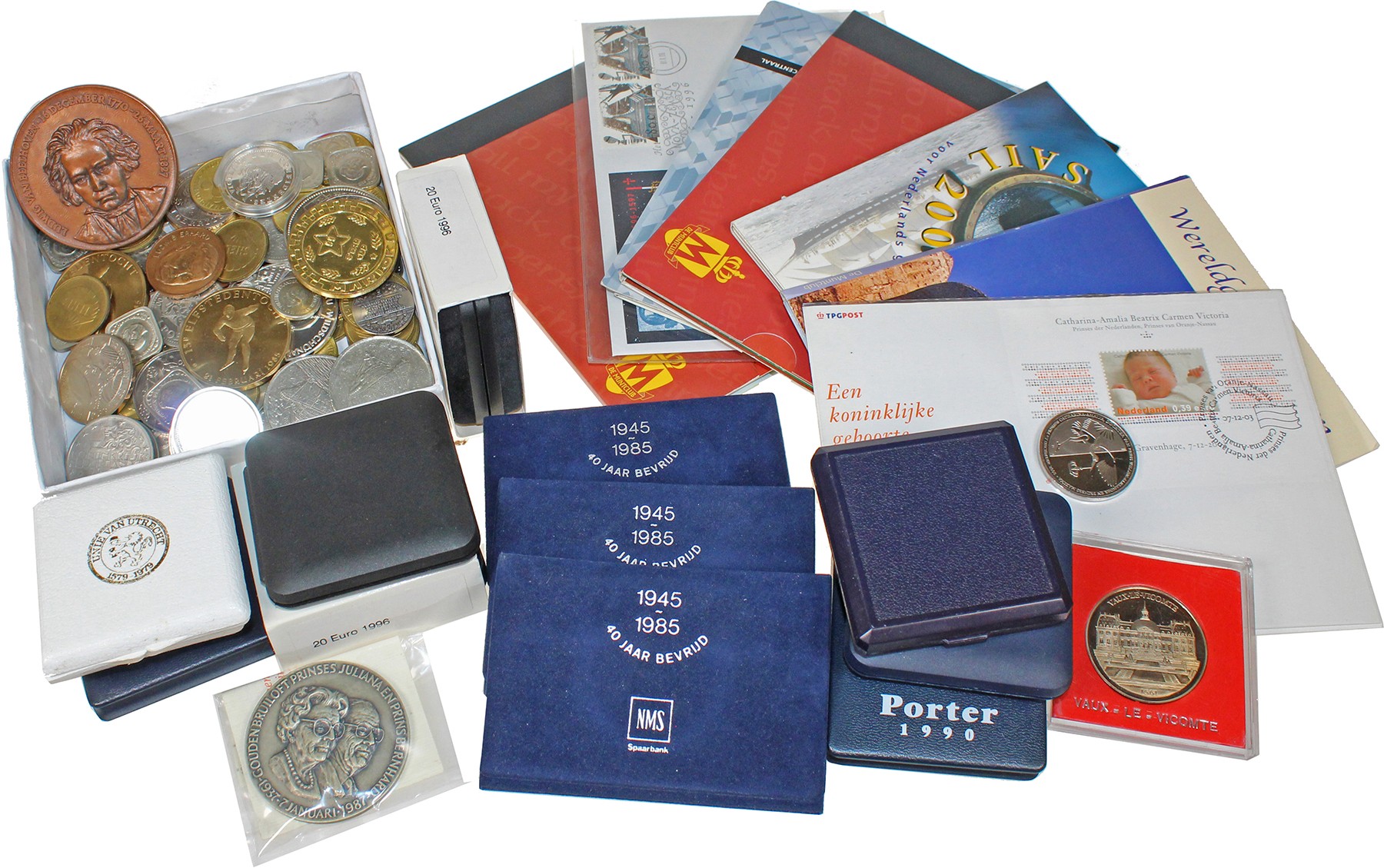 Doos diverse moderne penningen, w.o. enig zilver.