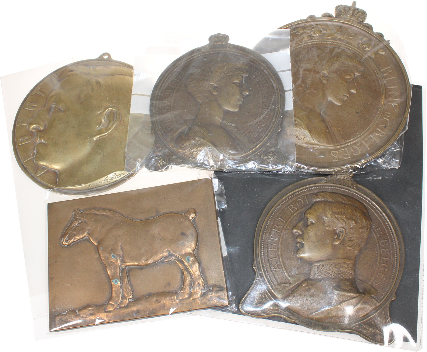 Lot (5) Groot formaat plaquettes van België o.a. Koningin Elisabeth 1916. Toegevoegd wandelmedailles. Gemiddeld prachtig.
