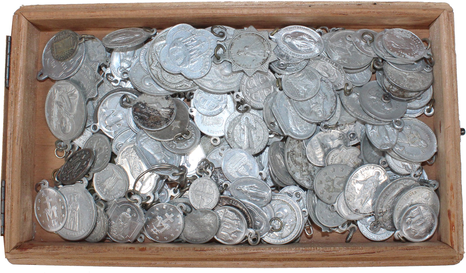 Lot ruim 100 aluminium religieuze draagmedailles.