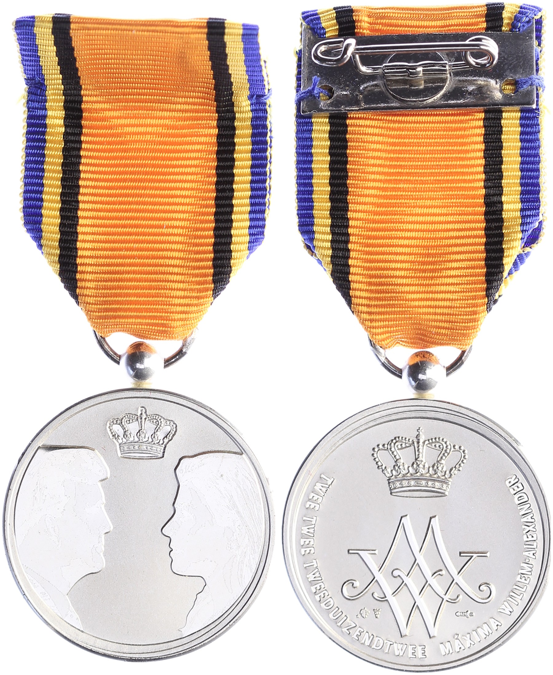 2002 Huwelijksmedaille Willem Alexander en Maxima. AR 30. Met lint. Prachtig.