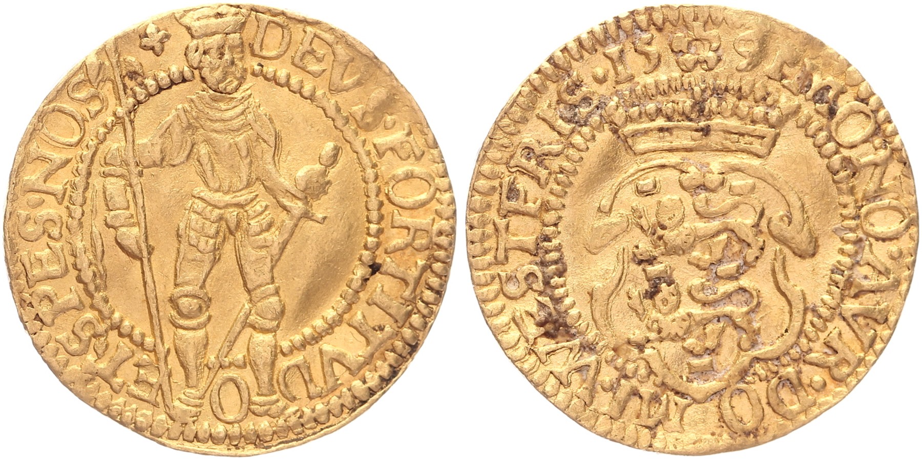 Dukaat 1591, Hongaars type. Delm. 833; CNM 2.46.6; HPM 06 [3,48 gram]. Zeer fraai.