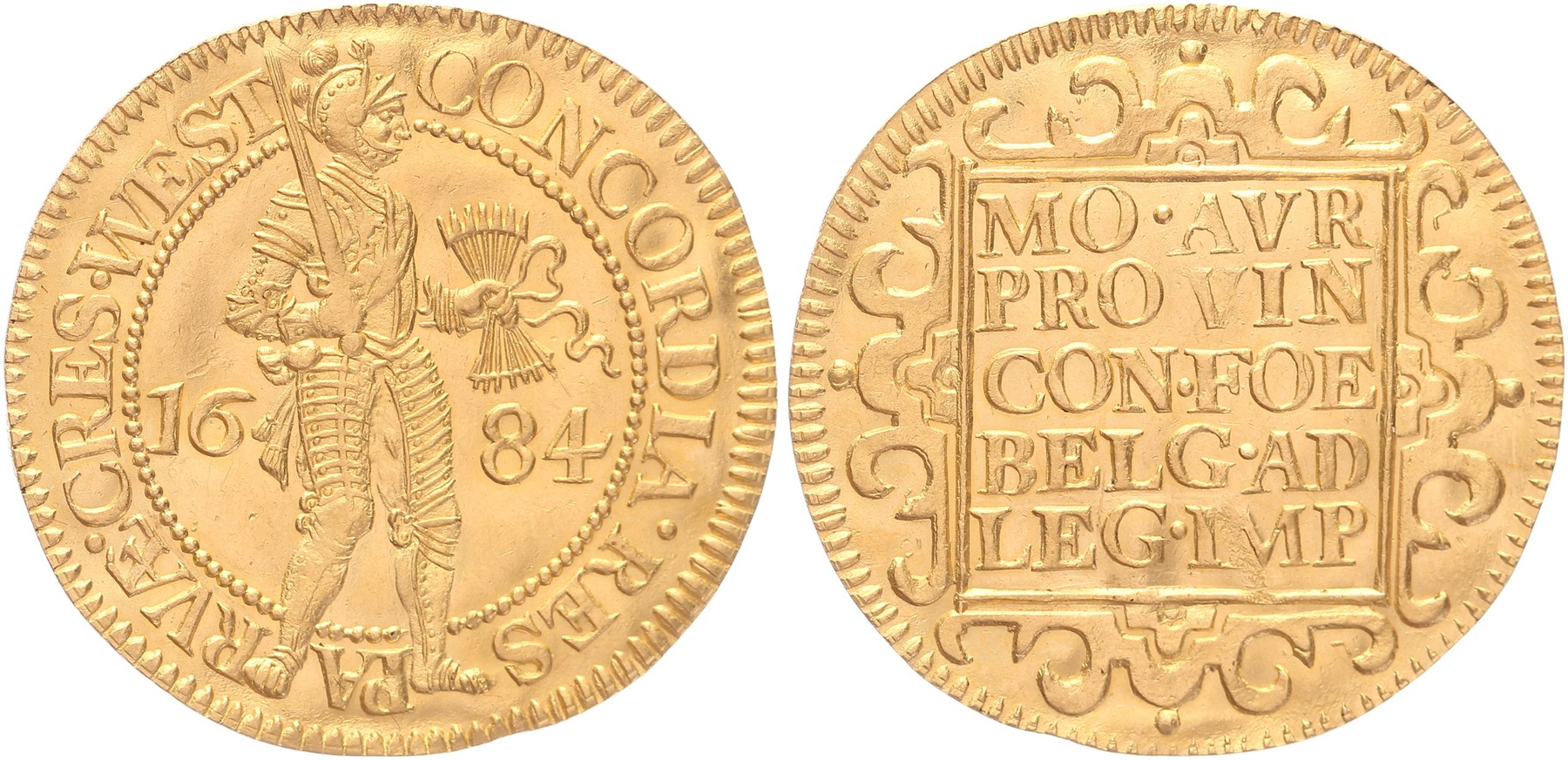 Dubbele dukaat 1684. Verk. 59.3; Delm. 835; CNM 2.46.8; HPM 04 [6,91 gram]. Prachtig.