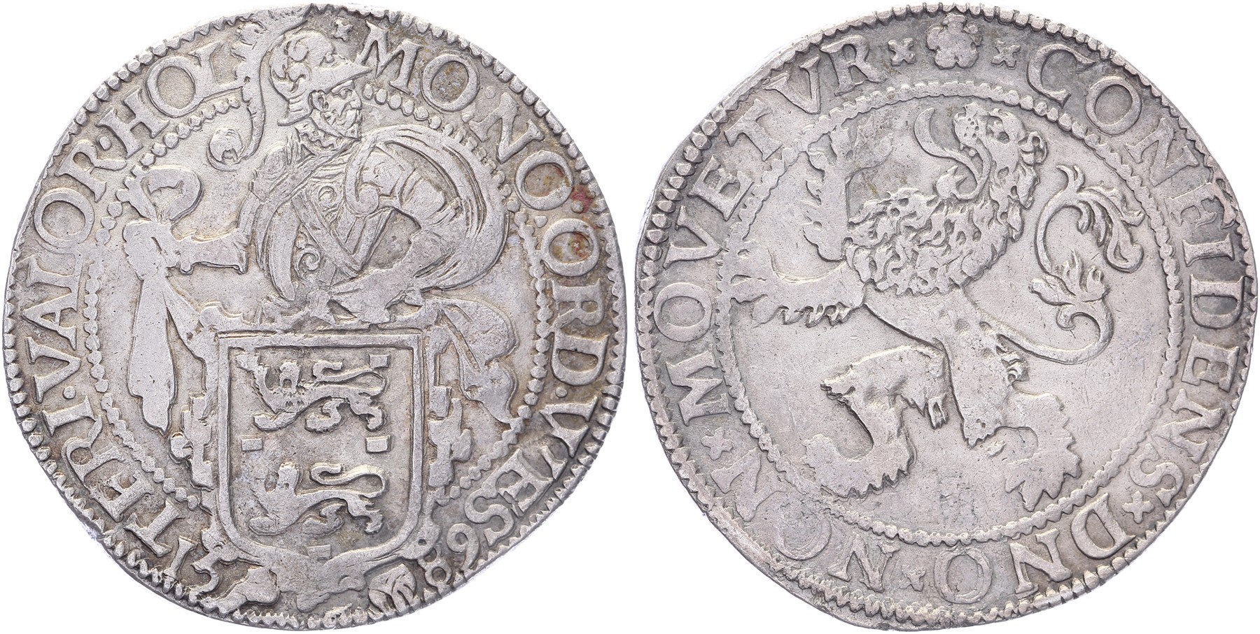 Leeuwendaalder 1589 op Hollandse voet. Delm. 833; CNM 2.46.20; HPM 12. Ruim zeer fraai.